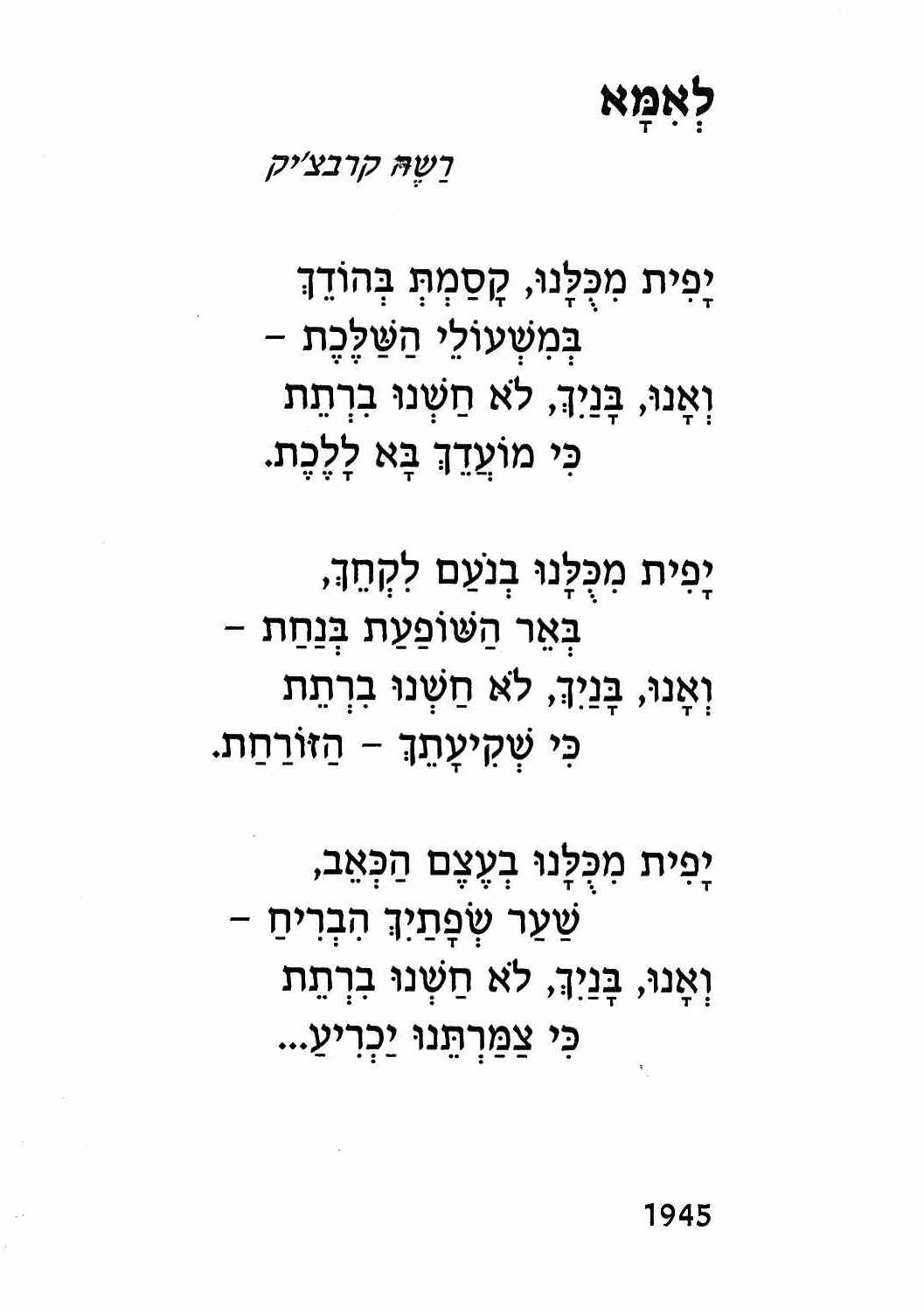 מוטקה ברק / קרבצ'יק , מפרסם שיר