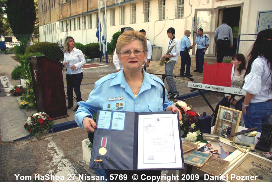 וחנוך ניצול שואה מדליק משואה במשטרת ישראל -צפת,ואיתם המוצגים מהשואה והאות לוחם