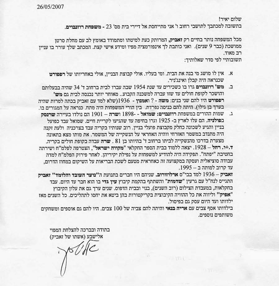 אישתו אלישבע , לאתר (באמצעות יאיר מירז/מזירצקי)