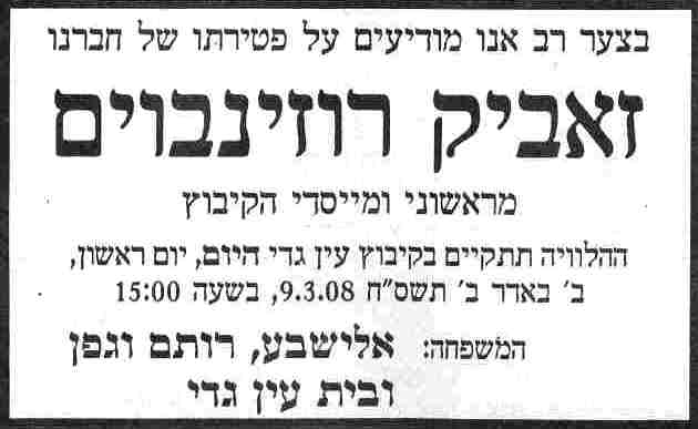 לזכרו של זאביק רוזנבוים מראשוני קיבוץ