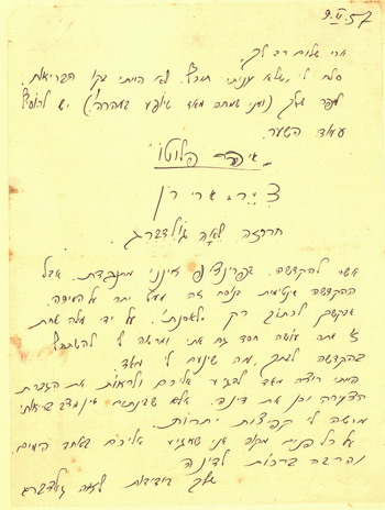 ילדי ישראל יוכלו לקרוא בו. כעבור כמה ימים הגיעה מעטפה לביתם ובו מכתב מלאה