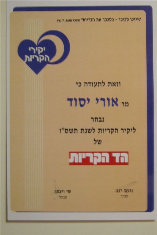 הקריות, היו אביבה ניסנבוים ואורי יסוד. ברכות למקבלי האות.