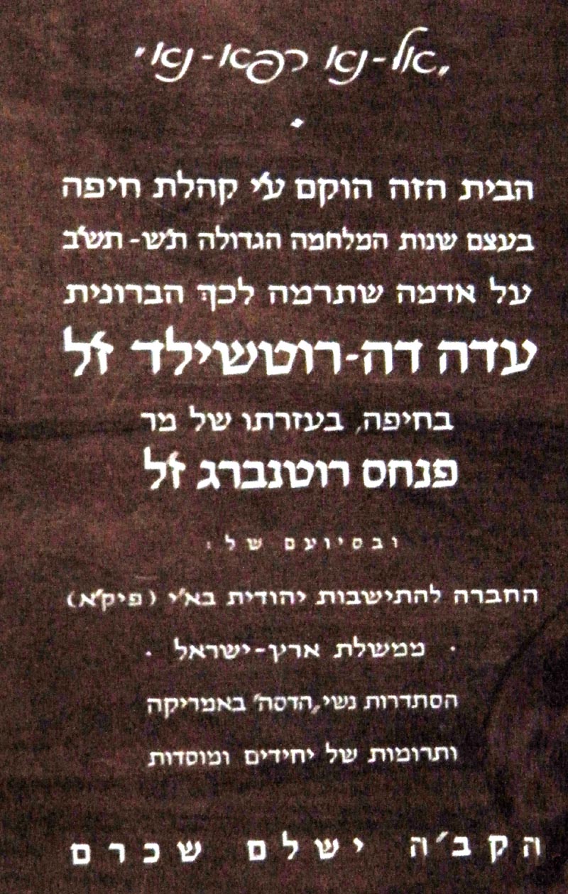 וכן לוח זכרון הוקרה לגב' רוטשילד >>> לוח הוקרה