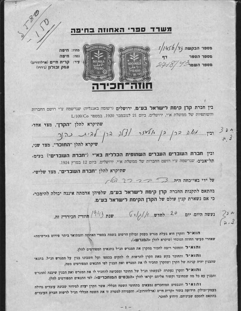 משמאל ליד הבולים.כיום, לחוזה שני צדדים. בקריית-חיים של אז, שלושה צדדים. חברת